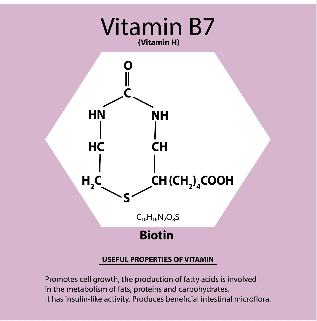 بیوتین (ویتامین B7): مادهای ضروری برای سلامت کراتین، که پروتئین اصلی سازنده مو و ناخن است. بیوتین نقش کلیدی در تقویت رشد و ضخامت مو و جلوگیری از شکنندگی ناخن دارد.