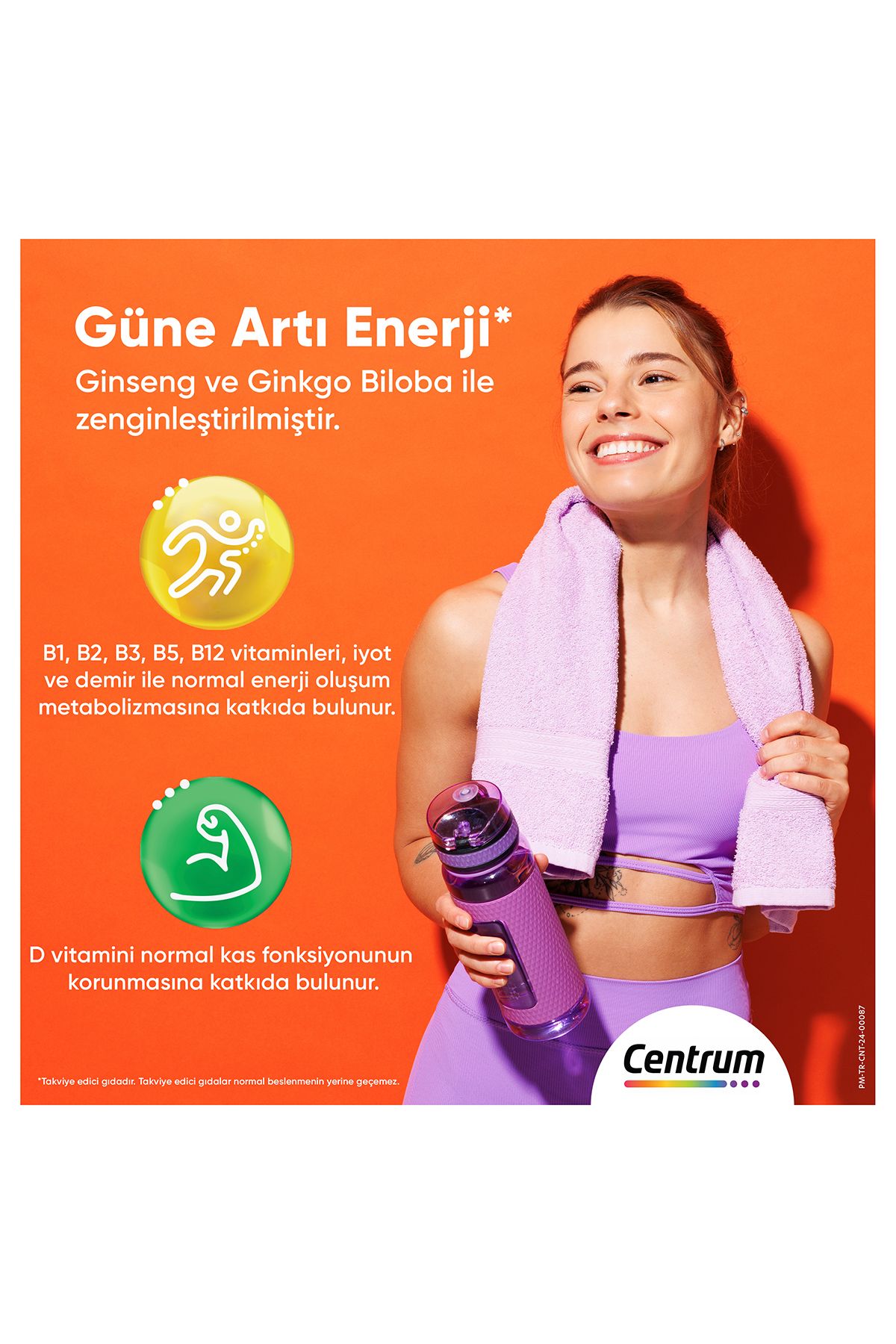 Centrum Energy ترکیبی از ۲۱ ویتامین و ماده معدنی ضروری به همراه عصارههای طبیعی انرژیزا مانند جینسینگ قرمز و جینکوبیلوبا است. این فرمولاسیون بهطور خاص طراحی شده تا از تولید انرژی طبیعی بدن پشتیبانی کرده، عملکرد مغزی را تقویت کرده و خستگی روزانه را کاهش دهد.