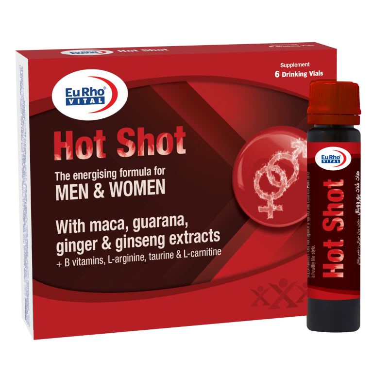 ویال خوراکی هات شات یوروویتال حاوی ال-آرژینین، ال-کارنیتین، تائورین، عصارههای گیاهی جینسینگ، زنجبیل، گوارانا، ماکا و آسرولا (حاوی ویتامین C) و ویتامینهای B است. باعث بهبود میل و قوای جنسی در خانمها و آقایان و افزایش سطح انرژی میشود.