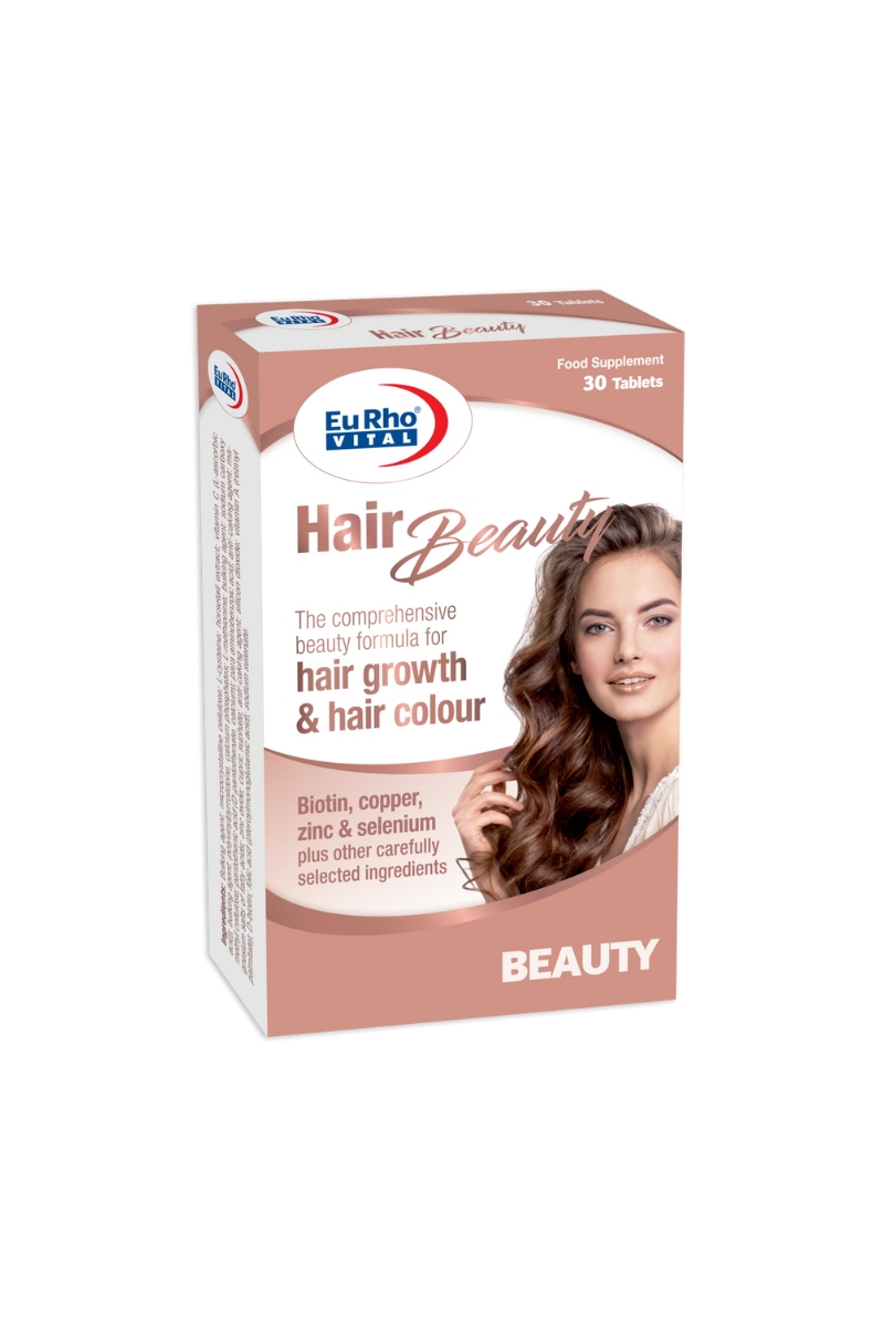 مجموعهای از آمینو اسیدهای سولفور دار، ویتامینها و مواد معدنی جهت رشد مو، تقویت ناخن و حفظ سلامت پوست ضروری است. کمبود این ریز مغذیها باعث آسیب، ریزش و تغییر در بافت و رنگ مو میشود. قرص هیر بیوتی یوروویتال حاوی آمینو اسیدهای ال- سیستئین و ال- متیونین، عصاره گیاه دم اسبی، پابا، ویتامینها و مواد معدنی مورد نیاز برای تقویت مو است.