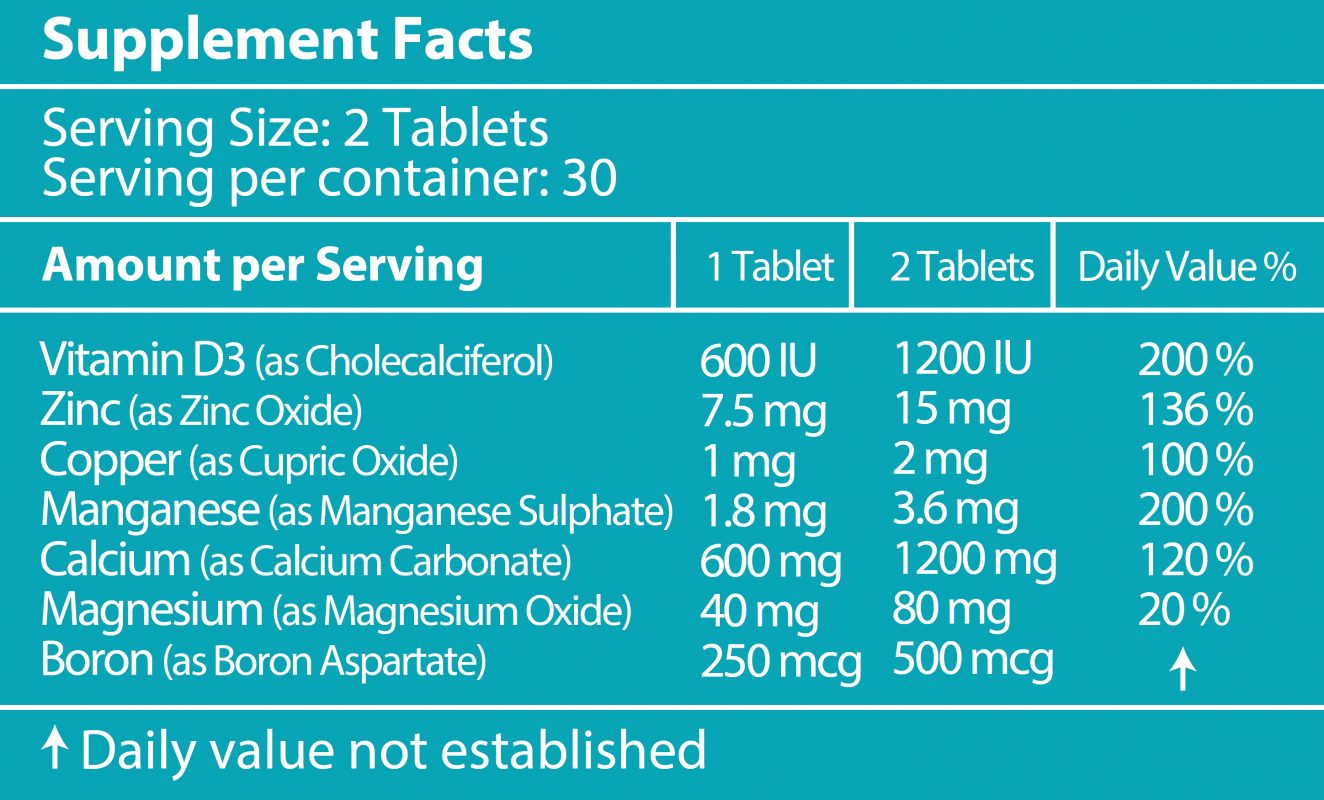 جهت تامین استحکام و سلامت استخوانی، علاوه بر کلسیم مصرف ترکیبات دیگر از جمله ویتامین د3 مورد نیاز است که به جذب کلسیم کمک میکند. همچنین تعداد دیگری از مواد معدنی از جمله منیزیم، مس و منگنز میتوانند سبب افزایش تراکم استخوانی و پیشگیری از انواع شکستگی شود.