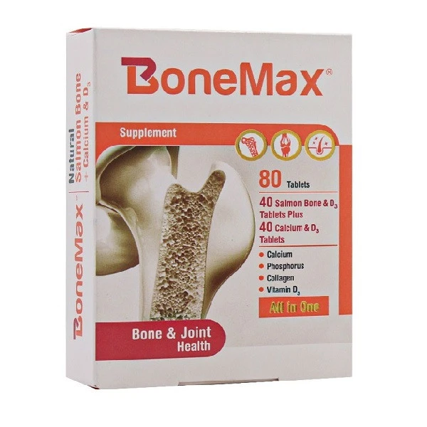 قرص بن مکس فارمد سلامت سینا تهیه شده از پودر استخوان ماهی سالمون همراه با ویتامین D است. پودر استخوان به عنوان بهترین منبع قابل دریافت کلسیم، فسفر و کلاژن در نظر گرفته می‌شود. بن مکس حاوی کلسیم و فسفر در نسبت ایده آل 2 به 1 و به فرم هیدروکسی آپاتیت است. استخوان ماهی سالمون به طور طبیعی دارای مقادیر بالای کلسیم، فسفر و کلاژن است و مطالعات نشان می‌دهند که این ماده قابلیت ویژه‌ای در کمک به سلامت استخوان و ساخته شدن استخوان جدید دارد. در مکمل بن مکس 2 عدد بلیستر نارنجی رنگ 20 عددی قرص روکش دار پودر استخوان سالمون + ویتامین D3 و 2 عدد بلیستر طلایی رنگ 20 عددی قرص روکش دار کلسیم + ویتامین D3 موجود است.