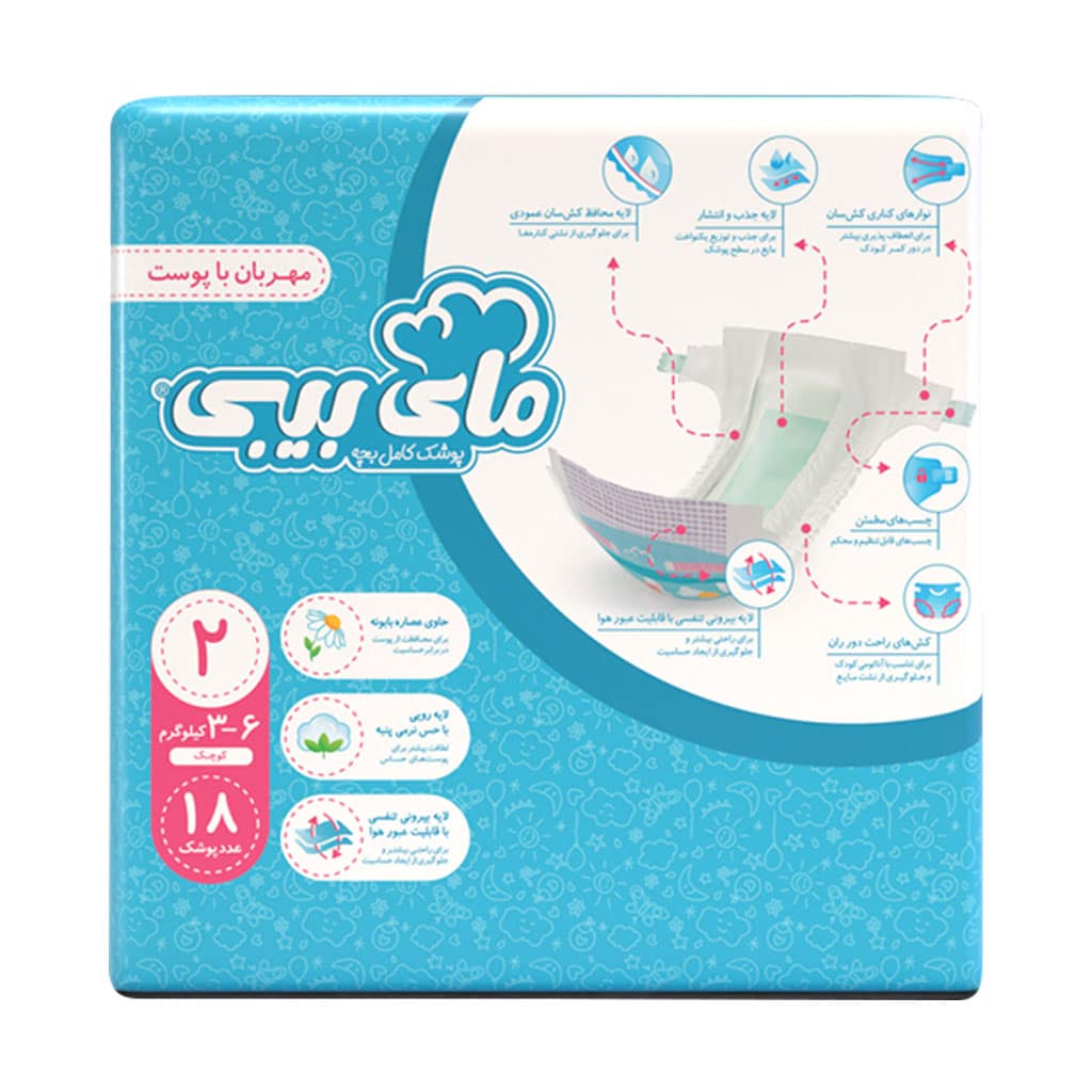 پوشک سایز ۲ مای بیبی حاوی عصاره بابونه بوده و مناسب برای نوزادان ۳ تا ۶ کیلوگرم می باشد. این محصول دارای قابلیت جذب فوق العاده، کشسان، آناتومیک وسازگار با پوست حساس کودک است.