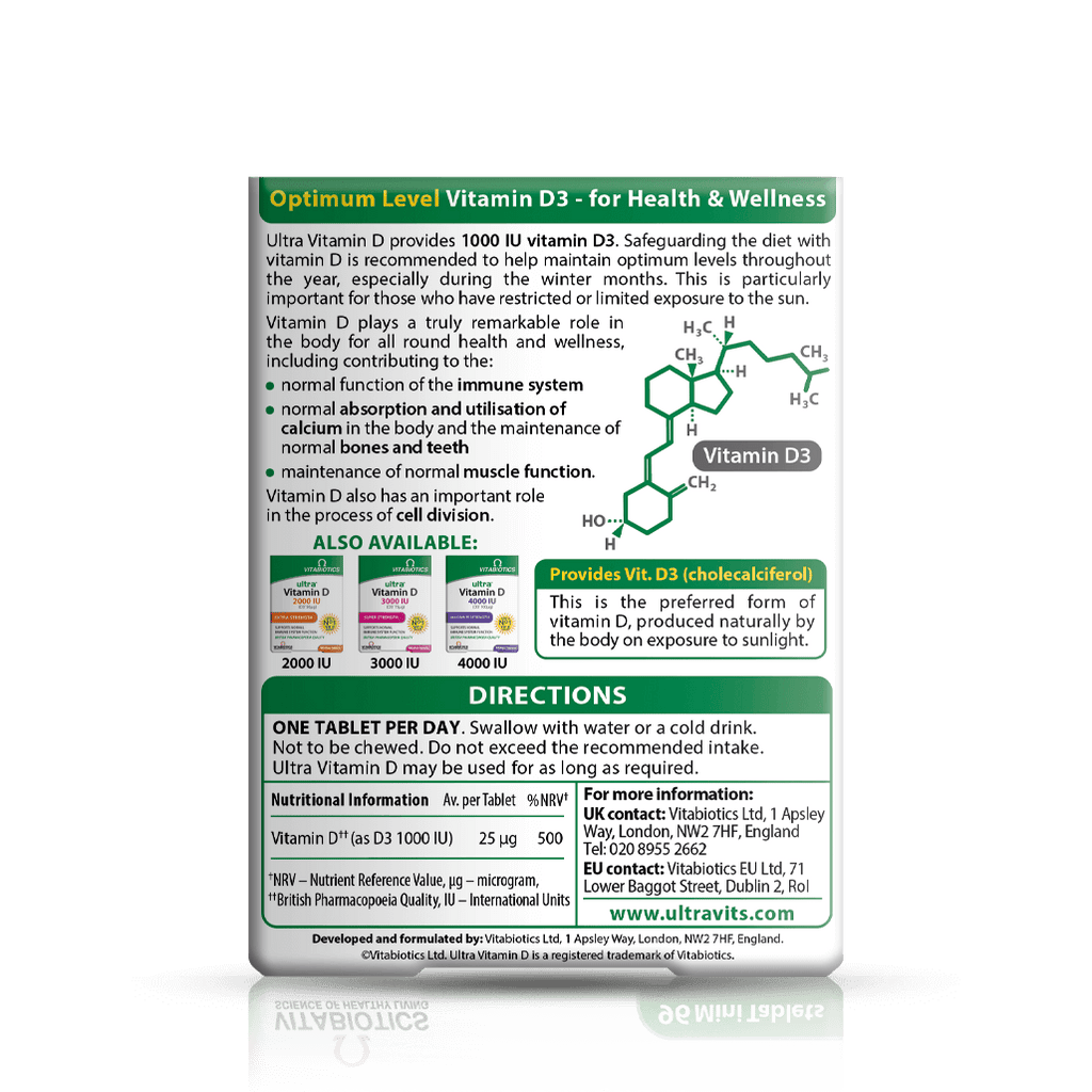 ویتامین D حیاتی است. اما بدن شما بدون نور خورشید نمی‌تواند آن را تولید کند. به همین دلیل است که اولترا ویتامین D 1000IU به طور ویژه فرموله شده است تا منبعی مناسب و مداوم از این ماده مغذی بسیار مورد نیاز را در اختیار شما قرار دهد