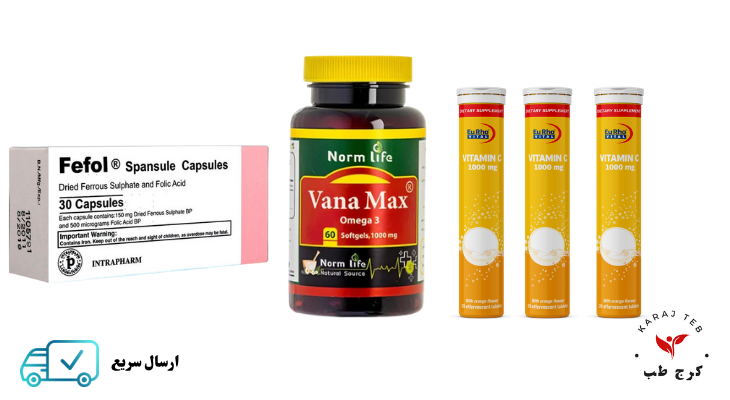 این پک شامل سه عدد قرص جوشان ویتامین سی با طعم لیمو،یک بسته امگا3 نرم لایف و یک بسته کپسول آهن ففول است