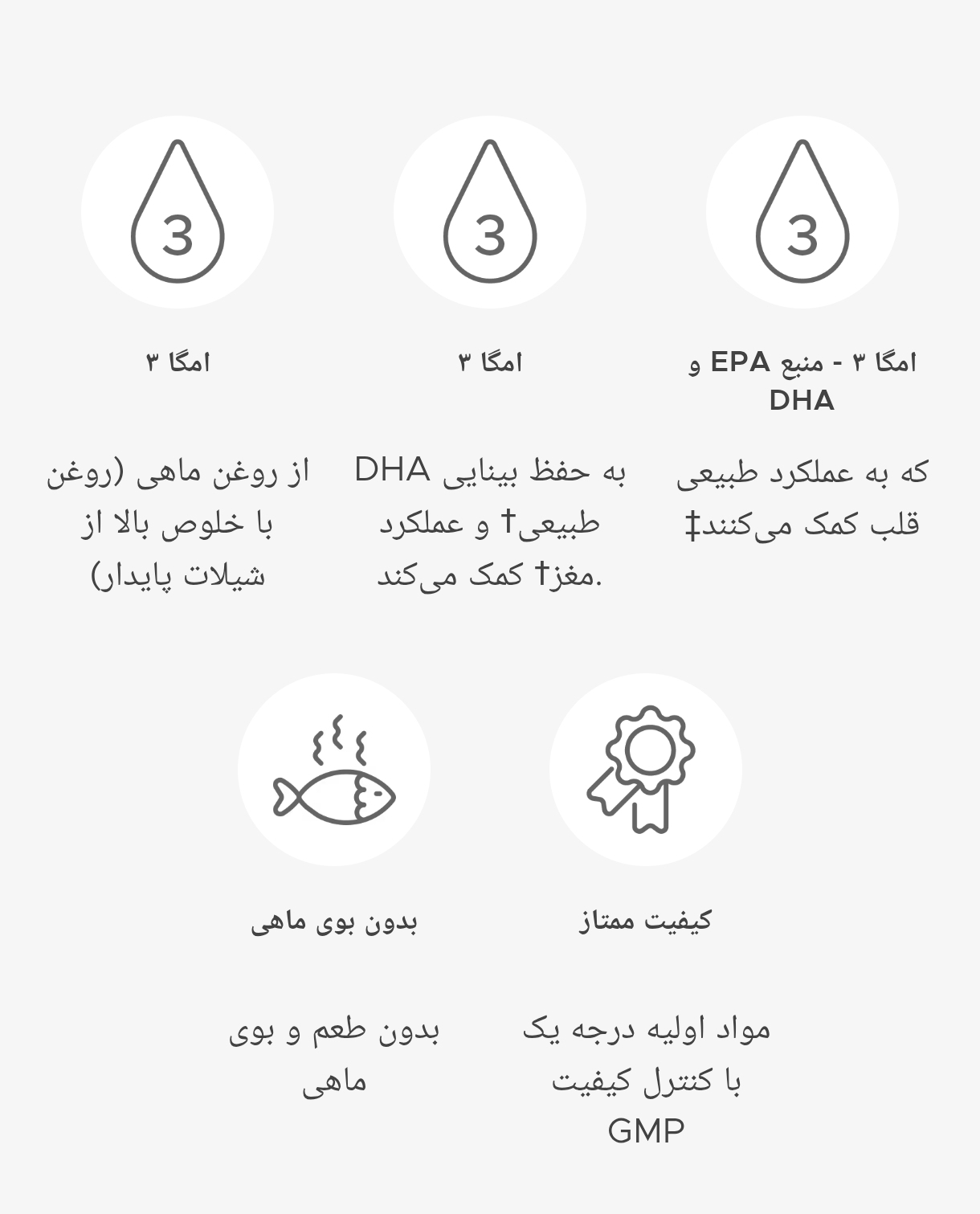 سلامت مغز و سیستم عصبی: DHA نقش مهمی در ساختار غشاء مغز و بهبود عملکرد حافظه و قوای شناختی دارد.سلامت بینایی: بهبود عملکرد بینایی کمک می‌کند.سلامت قلب و سلامت: می‌توان به کاهش خطر ابتلا به بیماری‌های قلبی خونی، کاهش کاهش‌های مضر خون (تری گلیسیرید) و کنترل فشار کمک کند.رشد و نمو کودکان: برای رشد طبیعی مغز نوزادان و کودکان ممکن است در کودکان به بیش‌فعالی و بیماری